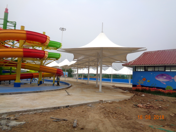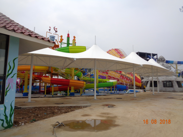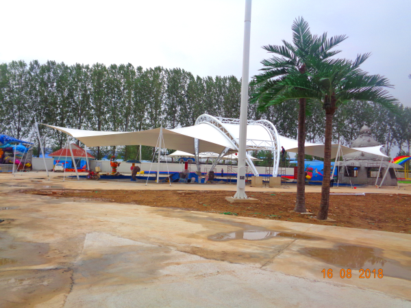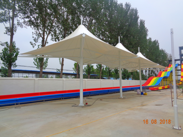 項(xiàng)目概況:膜結(jié)構(gòu)覆蓋了園區(qū)的大部分游樂設(shè)施,總平方數(shù)達(dá)3000平方。